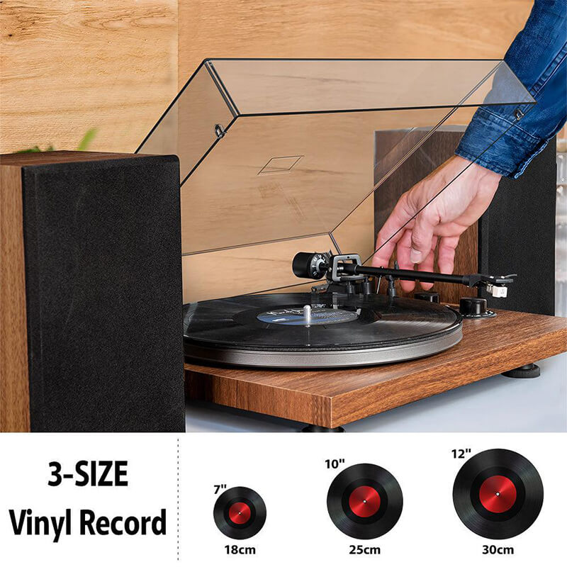 - Complete set of turntable and speaker with belt-drive turntable player and bookshelf speakers;