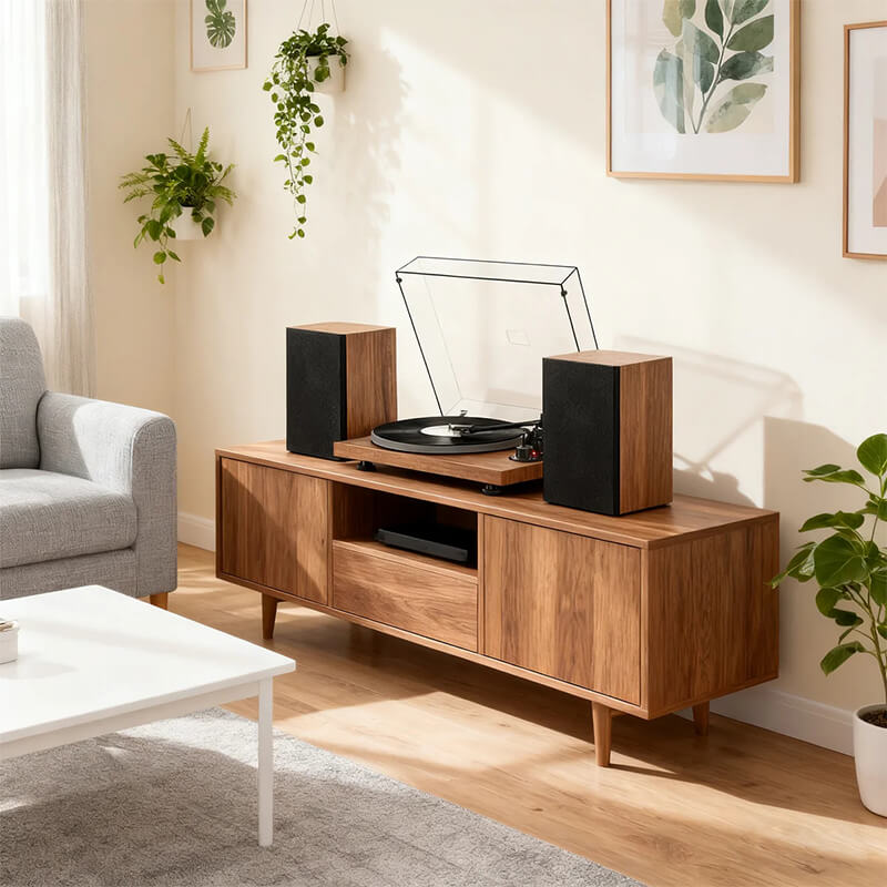 Turntable and speaker sets Udreamer UD-006 player can let you perfectly paired vinyl experience. We’ve hand-selected these combinations to ensure that your record player is perfectly matched with a pair of high-performance bookshelf speakers. By bundling these components, we guarantee technical compatibility, balanced acoustics, and a cohesive visual style—all delivered in one convenient package.
